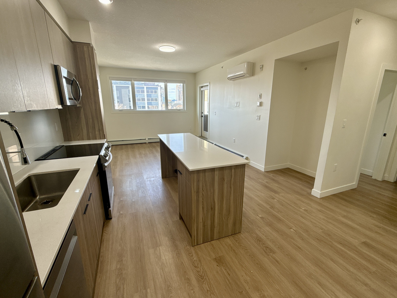 Step into luxurious interior suites thoughtfully designed with your comfort and lifestyle in mind. Each suite features modern conveniences like in-suite laundry and generous storage lockers, ensuring effortless day-to-day living. Enjoy peace of mind with a secure underground parkade and climate-controlled comfort with in-suite air conditioning. Soaring 9-foot ceilings create a spacious, airy atmosphere, while expansive windows offer stunning views of the surrounding neighborhood—bringing the beauty of the outdoors into your private retreat. Whether you're relaxing at home or entertaining guests, these suites are the perfect blend of style, function, and sophistication.